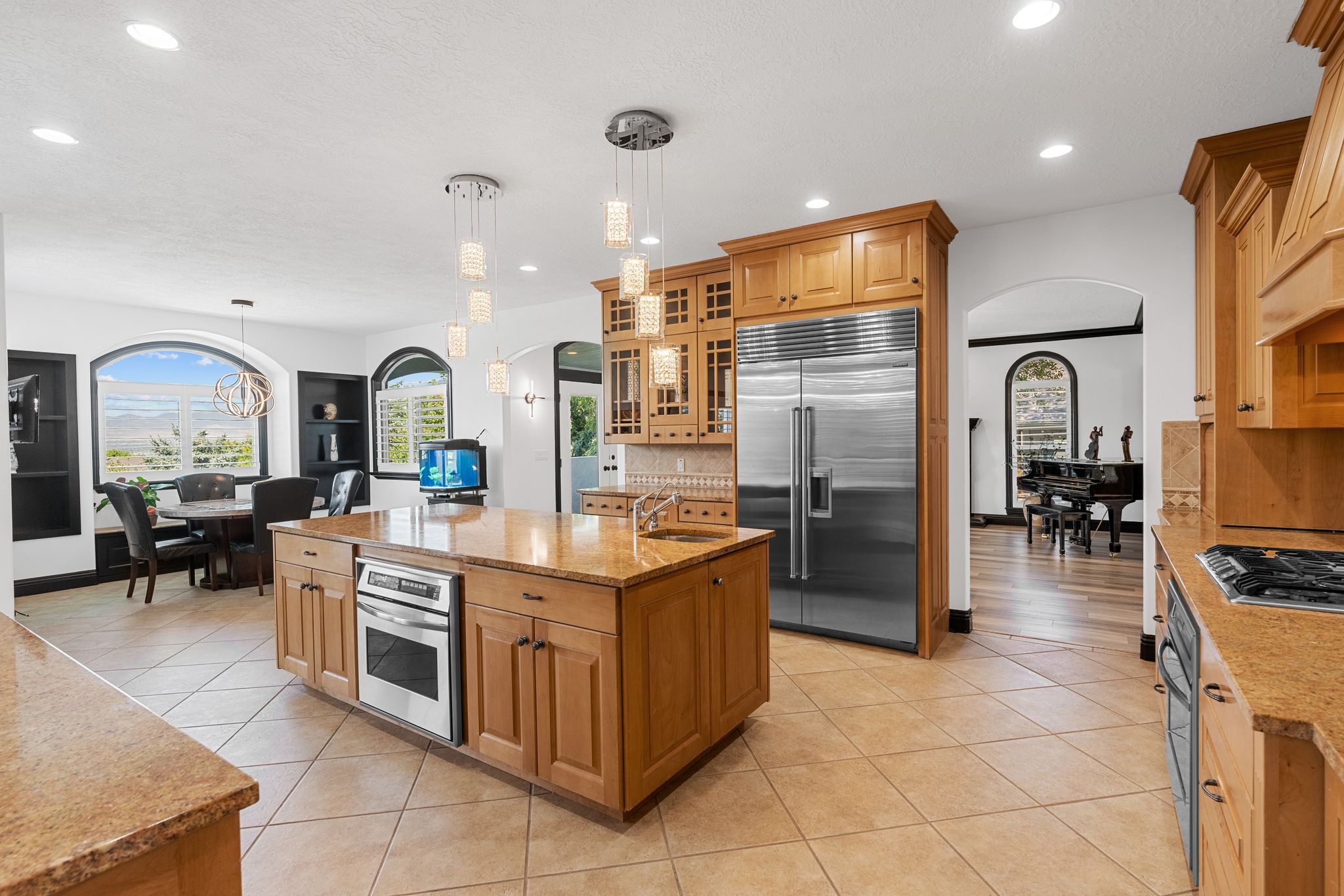 *Open House Saturday, October 5th 10am – 12pm* This spacious, beautiful 2-story home located on the east side of Draper offers breathtaking mountain and valley views. The open floor plan is perfect for entertaining and boasts a large kitchen with ample counter space, ideal for culinary enthusiasts, and a large family room with grand windows.The main floor bedroom with an en-suite full bath is currently being used for an office/den. Upstairs, the primary bedroom is a true retreat, featuring a cozy sitting area, private patio, a walk-in closet, an en-suite bathroom and a balcony with panoramic views of the valley and the private backyard. Also upstairs is a large laundry room, an additional bedroom with en-suite bathroom and the other two bedrooms that share a full bathroom. The daylight/walkout lower level provides a fully equipped second kitchen, and a family room that opens to the backyard. Three more bedrooms in the lower level offer flexibility for guests or multi-generational living. Step outside to enjoy the fully landscaped, fenced backyard with a sparkling in-ground pool creating your private oasis. This home is located within minutes to the best of Utah’s outdoor recreational lifestyle with hiking & biking trails & world-class ski resorts. Don’t miss your chance to own this incredible property! |