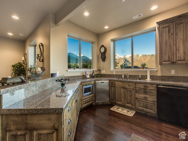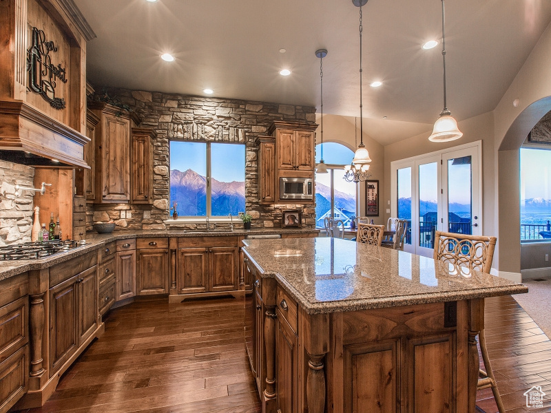 Welcome to your Luxurious Retreat in the Coveted Suncrest Community, where refined living meets panoramic vistas. Nestled on a sprawling half-acre lot, this two-story masterpiece captivates with unobstructed views of majestic mountains and serene valleys, offering a daily spectacle of nature’s grandeur. Step inside and be greeted by an expansive open floor plan, where vaulted ceilings soar overhead, and a warm fireplace beckons you to unwind in comfort. The heart of the home is the gourmet kitchen, adorned with sleek granite counters, a gas range, and double ovens, promising culinary delights and culinary adventures. The main floor beckons with a primary bedroom and spa-like en-suite bathroom, offering a serene sanctuary for relaxation and rejuvenation. Ascend to the stairs to discover additional bedrooms, each offering comfort and privacy. Entertainment knows no bounds in the finished, walkout lower level, where a second kitchen, spacious bedrooms, and ample room for gathering await. Whether hosting guests or enjoying cherished moments with family, this versatile space ensures every occasion is memorable. Outside, a private backyard oasis awaits, complete with a covered patio where al fresco dining is elevated against the backdrop of breathtaking mountain and city views. A charming porch invites you to sip your favorite morning drink as the sun rises, while outdoor lighting illuminates the evenings with a touch of enchantment. Nestled within the esteemed Alpine school district in Utah County, and surrounded by opportunities for outdoor recreation, including hiking, biking, and world-class skiing, this residence epitomizes the pinnacle of luxury living in a premier location. Welcome home to a life of unparalleled beauty and blissful tranquility |