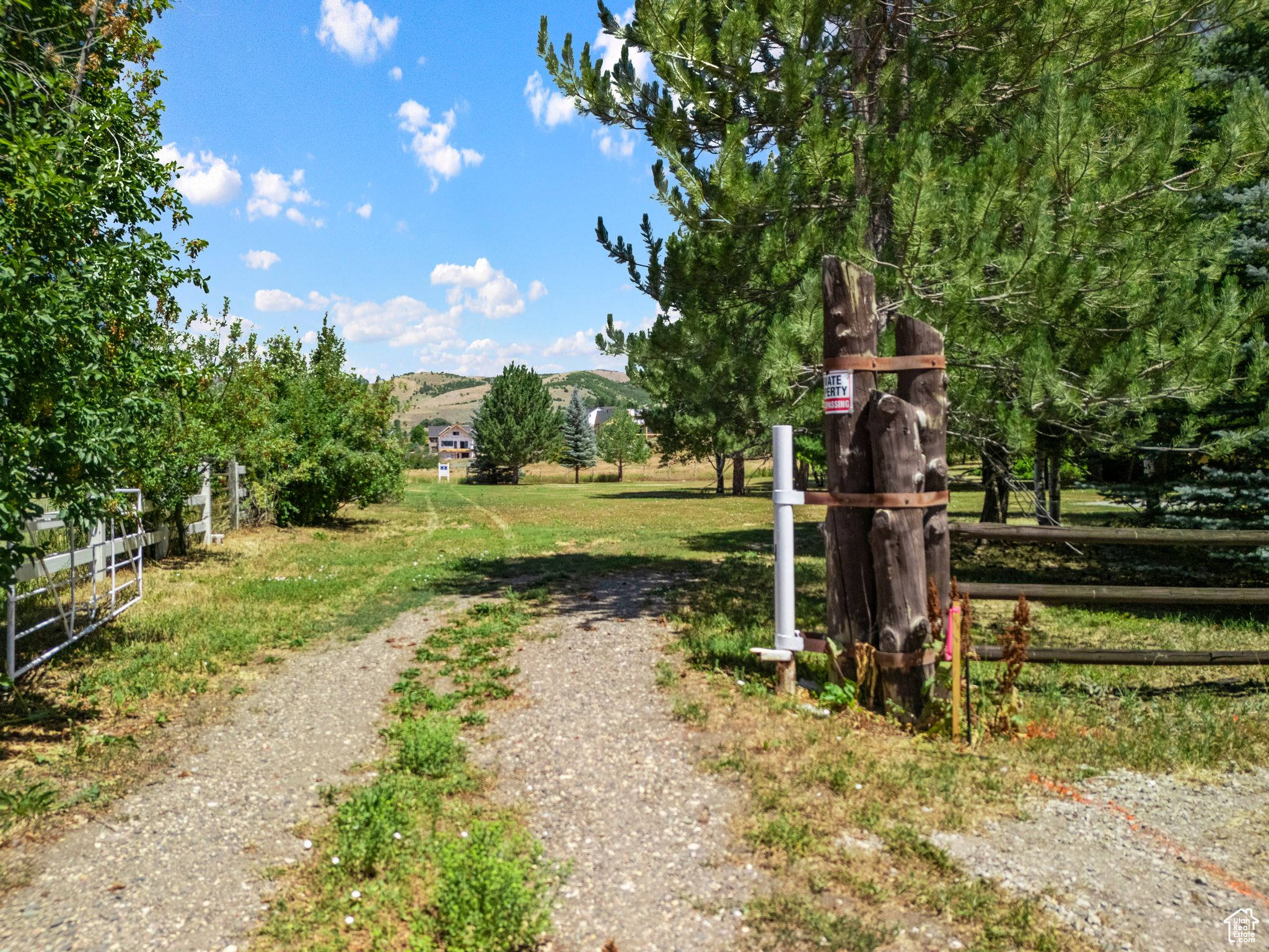 Enter on 4100 N then take the small dirt road easement (between two properties) on the North side of 4100 N. located (just below 4200 East sign at gated subdivision. As you are on 4100 N enter northside small dirt road easement you will past an existing home then reach the gate/fence thats where the property begins and the Coldwell Banker sign isThe photos attached show this entrance and location |